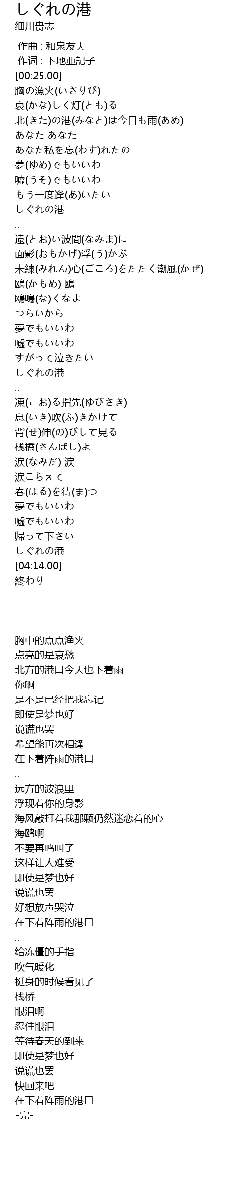 北(きた)の港(みなと)は今日も雨(あめ) |