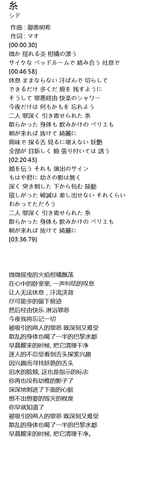 | [03:08.42] | 二人 罪深く 引き寄せられた 糸 |