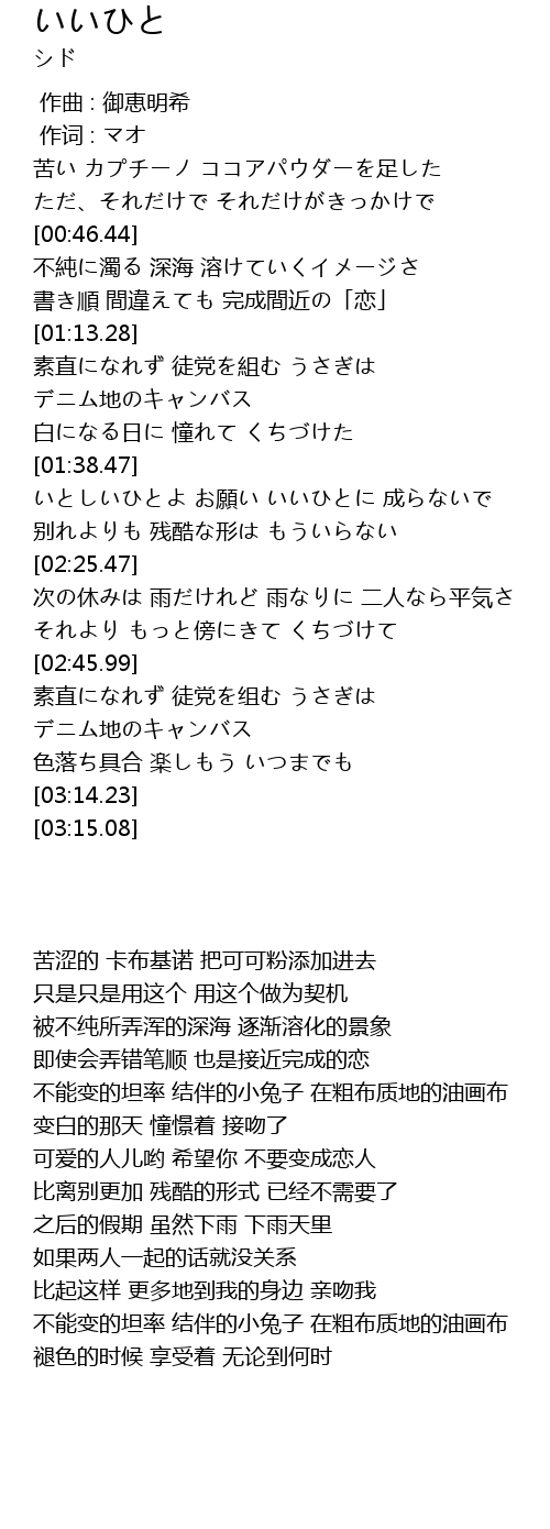 | [02:02.09] | いとしいひとよ お願い いいひとに 成らないで |