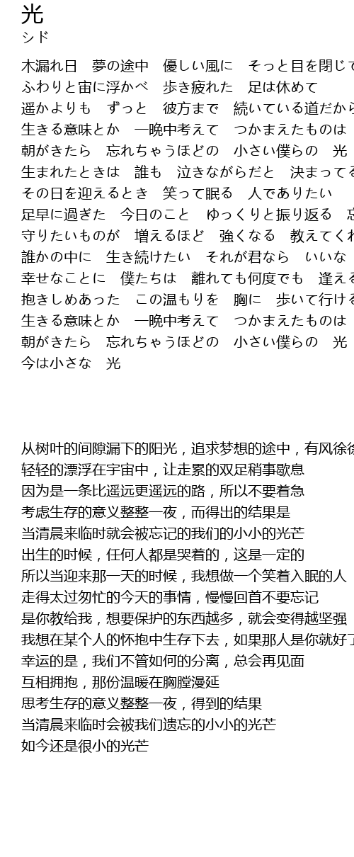 | [03:53.65] | 当清晨来临时会被我们遗忘的小小的光芒 |