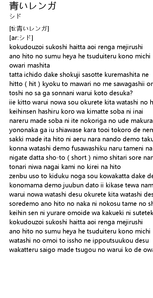 | [03:18.991] | kokudouzoi sukoshi haitta aoi renga mejirushi |