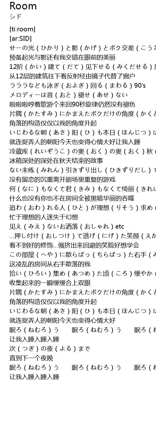 | [03:24.750] | 眠ろ(ねむろ)う 眠ろ(ねむろ)う 眠ろ(ねむろ)う |