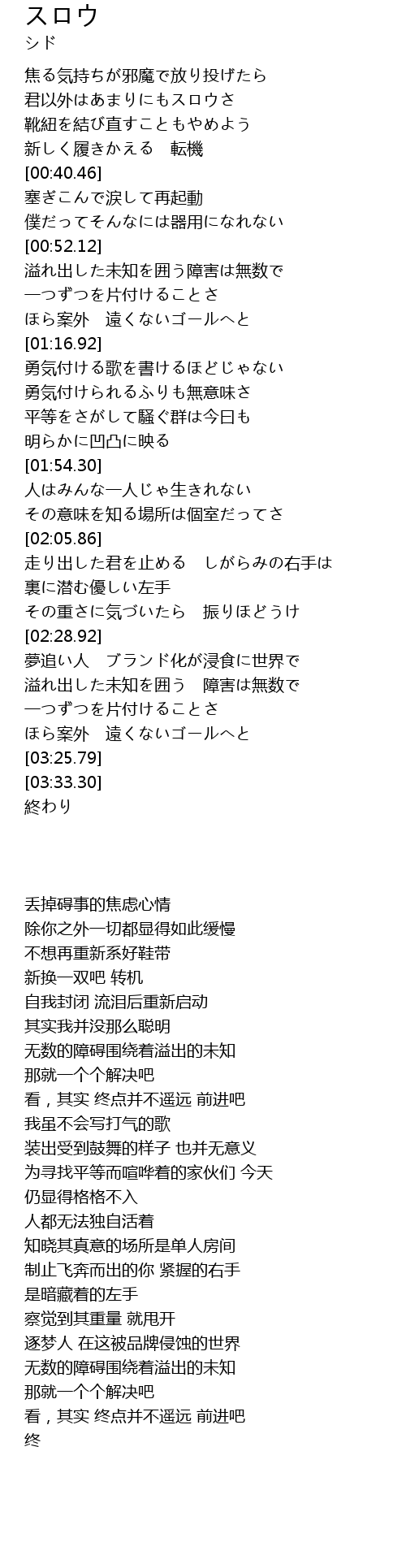 | [00:26.26] | 君以外はあまりにもスロウさ |
