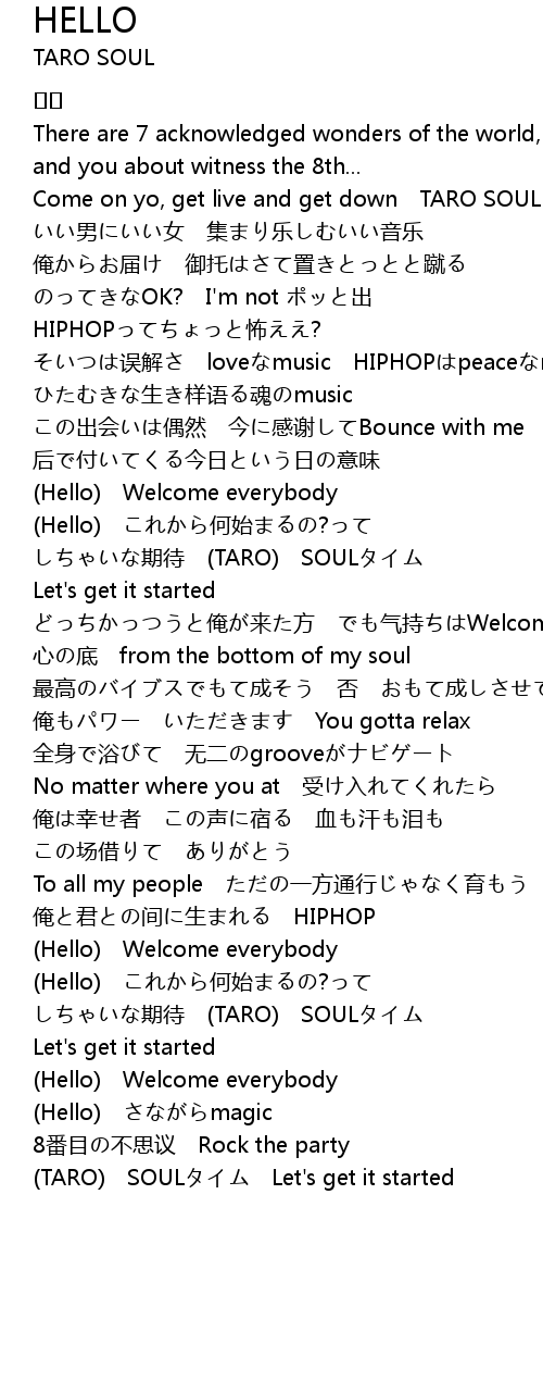 | Come on yo, get live and get down TARO SOUL is in your town | |