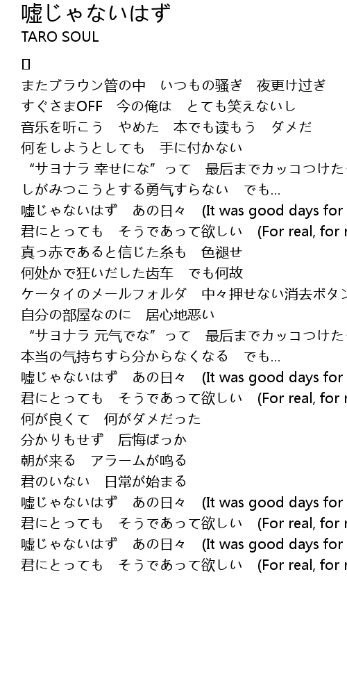 | 嘘じゃないはず あの日々 (It was good days for me, baby) | |