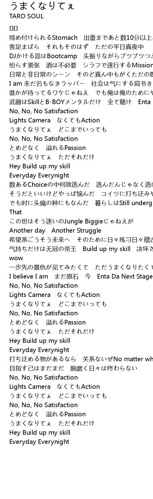 | 歌曲 | うまくなりてぇ |