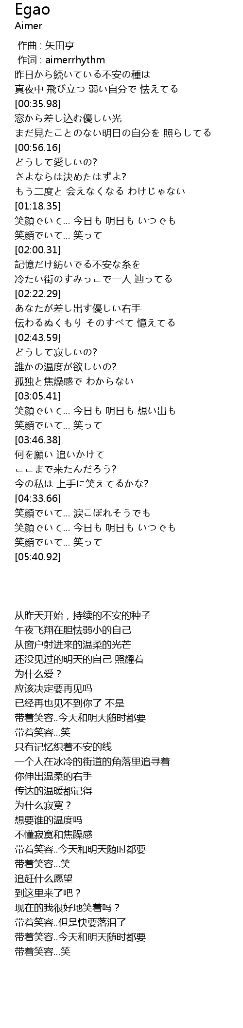 | [01:40.56] | 笑顔でいて... 笑って |
