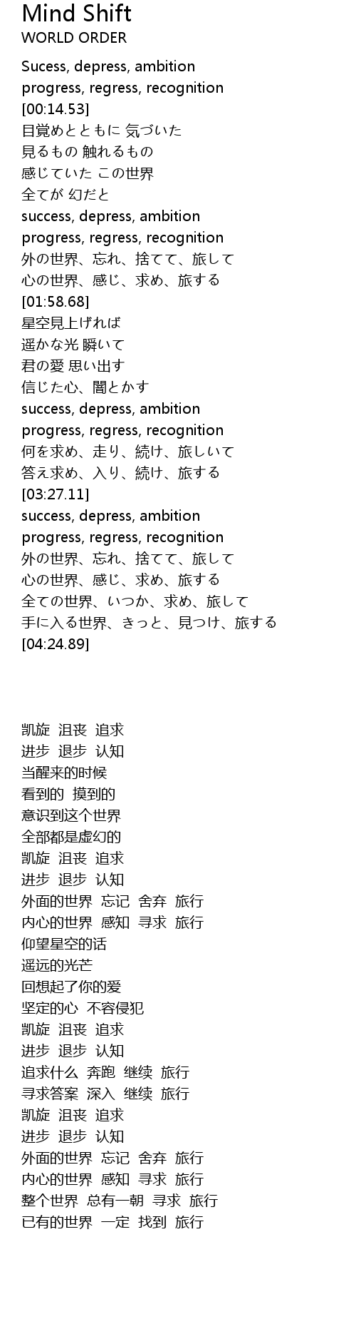 | [03:41.84] | 凯旋 沮丧 追求 |