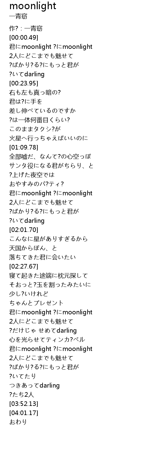 | [02:58.04] | 君にmoonlight ?にmoonlight |