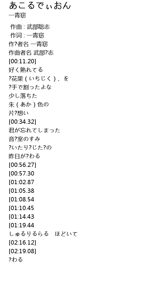 | [01:45.78][00:57.30] | あこるでぃおん ?指の?を |