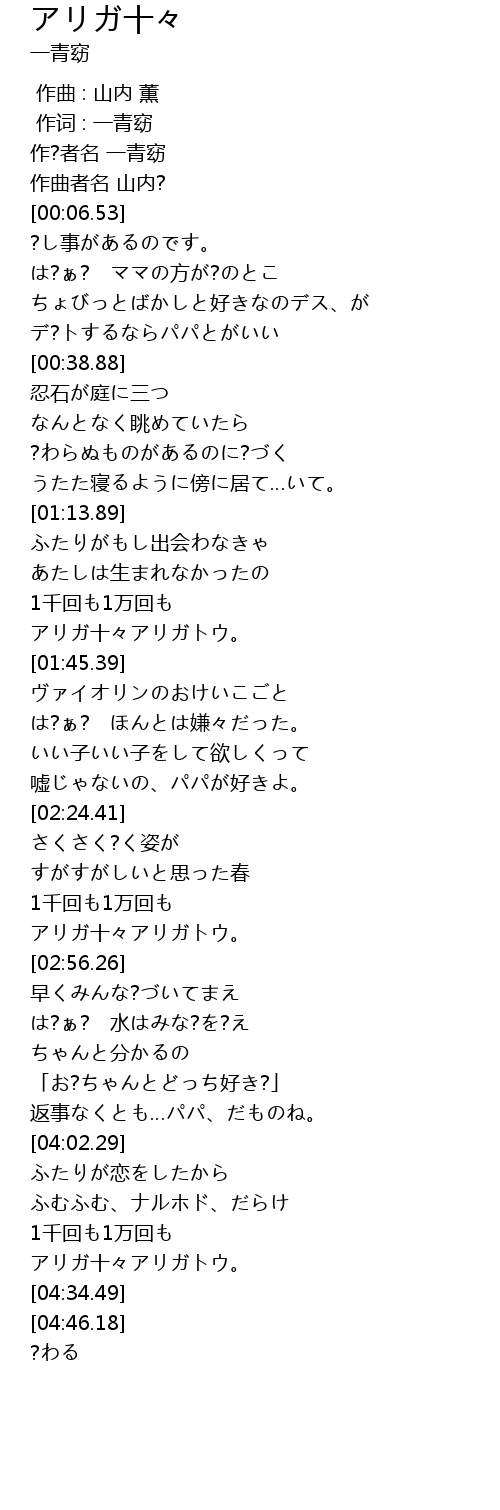 | [04:26.25] | アリガ十々アリガトウ。 |