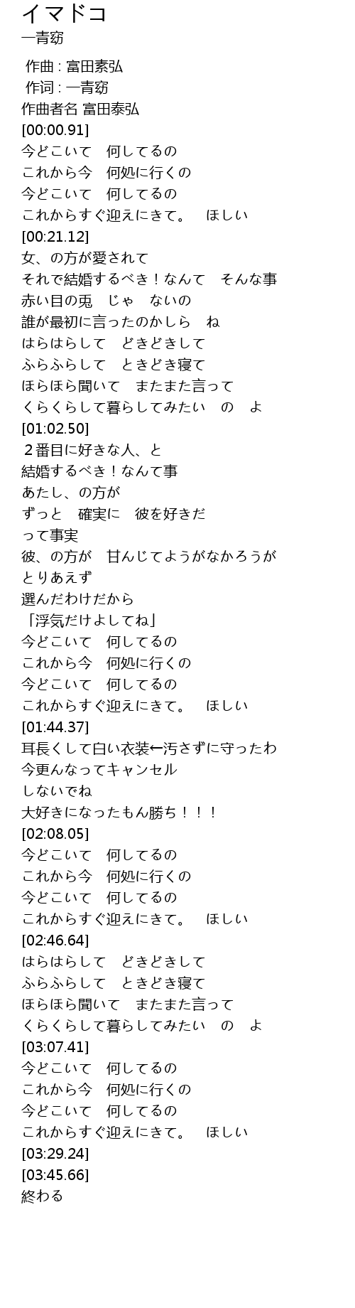 | [03:23.62] | これからすぐ迎えにきて。 ほしい |