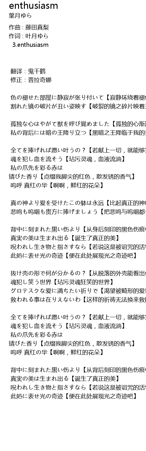 | 歌曲 | enthusiasm |