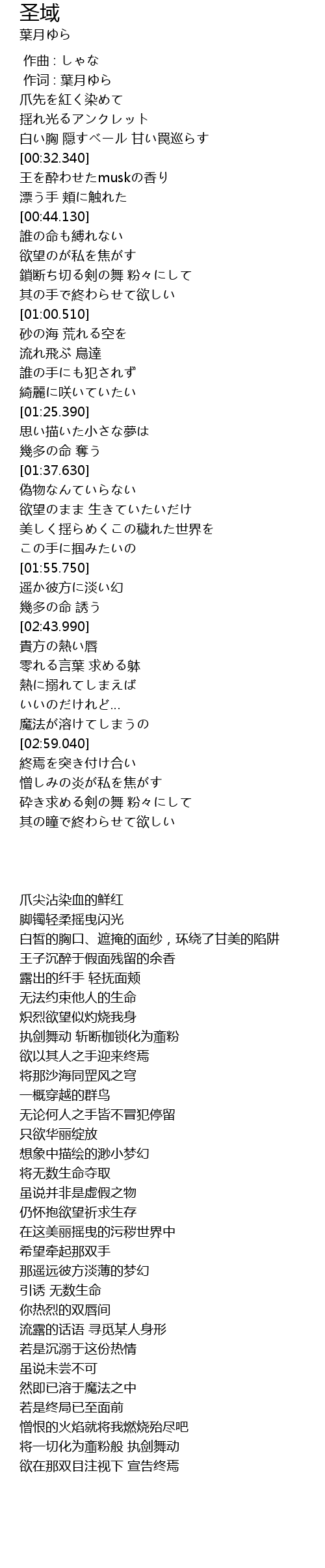 | [00:26.430] | 白皙的胸口、遮掩的面纱,环绕了甘美的陷阱 |