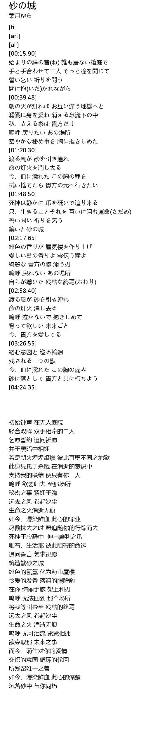 | [04:14.10] | 砂に落として 貴方と共に朽ちよう |
