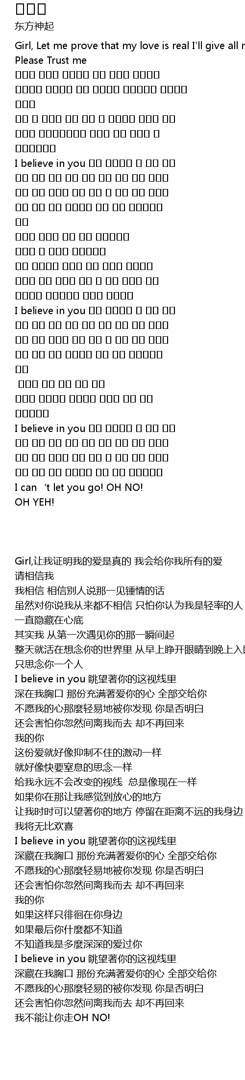 | [00:03.500] | Girl,让我证明我的爱是真的 我会给你我所有的爱 请相信我 |