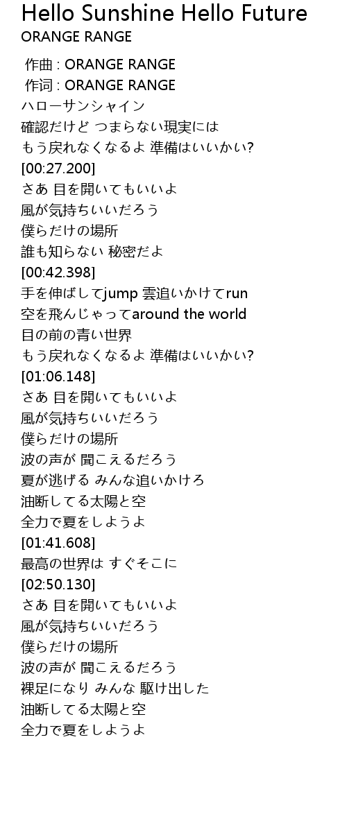 | [00:01.00] | 作词 : ORANGE RANGE |