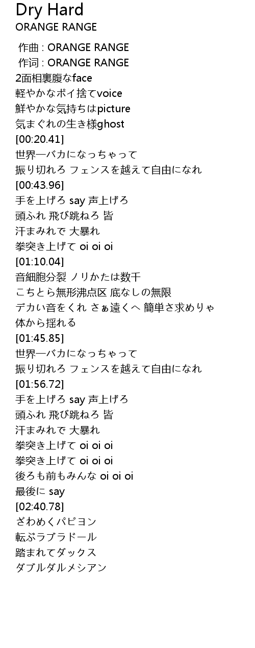 | [00:01.00] | 作词 : ORANGE RANGE |