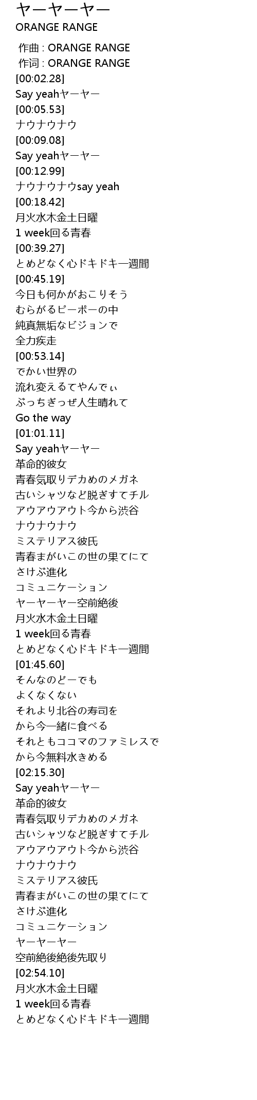 | [00:00.00] | 作曲 : ORANGE RANGE |
