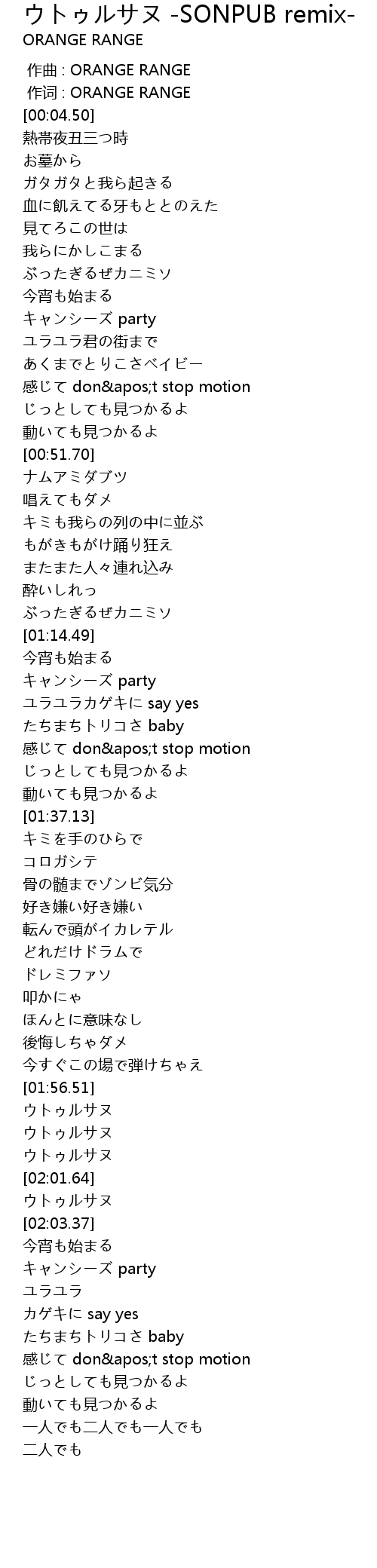 | [00:01.00] | 作词 : ORANGE RANGE |