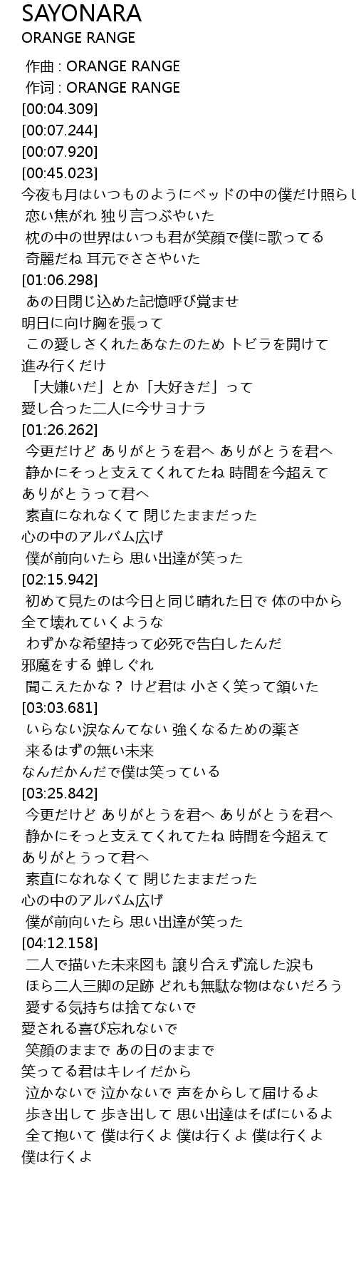 | [00:00.00] | 作曲 : ORANGE RANGE |