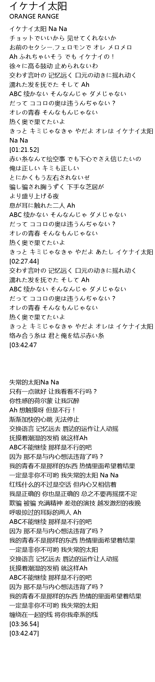 | [00:14.78] | イケナイ太阳 Na Na |
