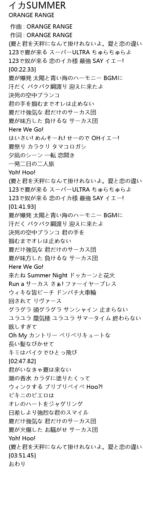 | [00:01.00] | 作词 : ORANGE RANGE |