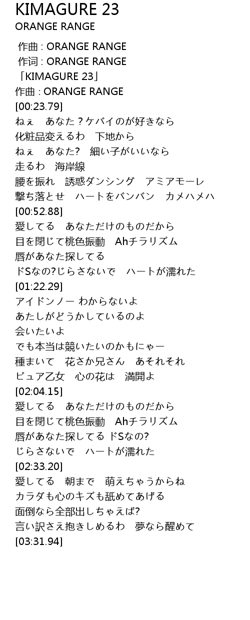 | [00:11.79] | zuo qu ORANGE RANGE |