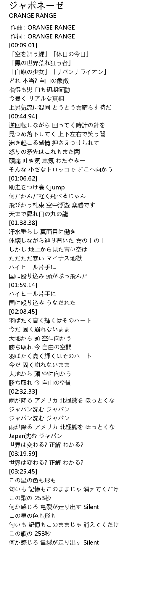 | [00:00.00] | 作曲 : ORANGE RANGE |