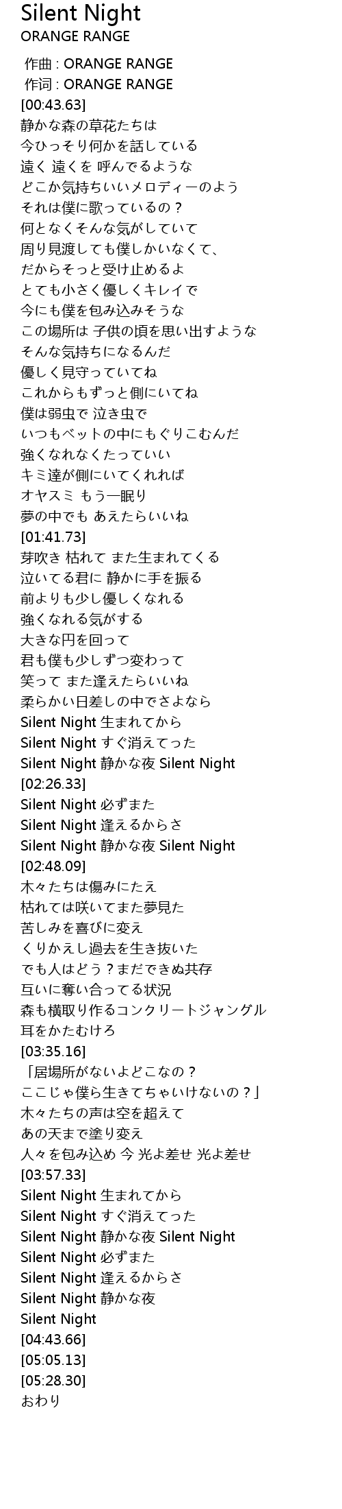| [04:03.27] | Silent Night すぐ消えてった |
