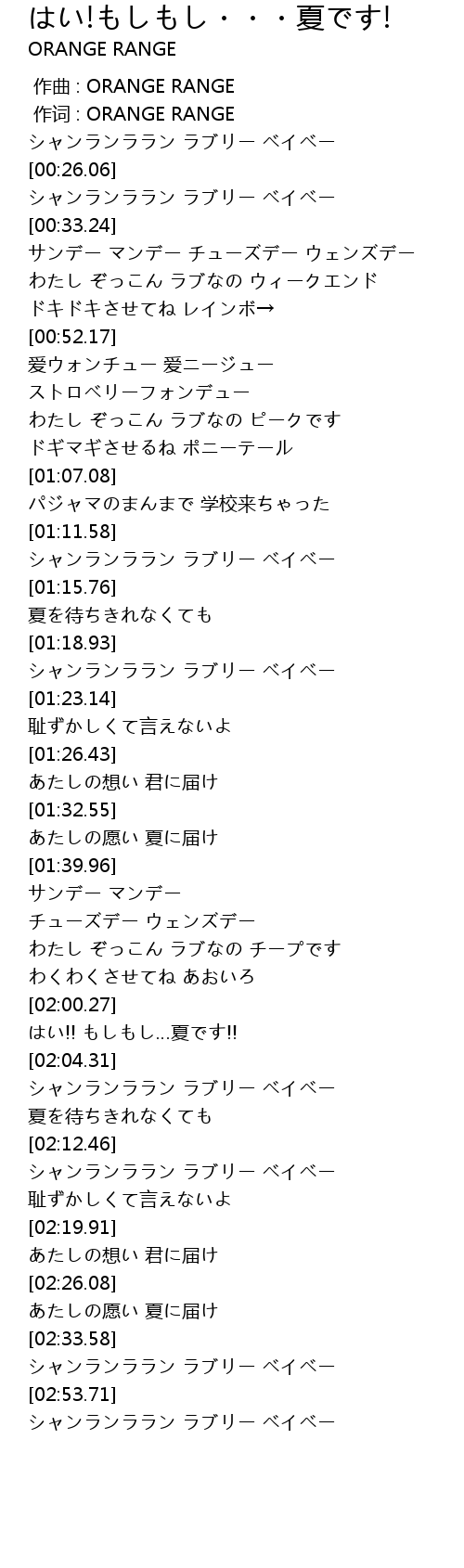 作曲 : ORANGE RANGE |