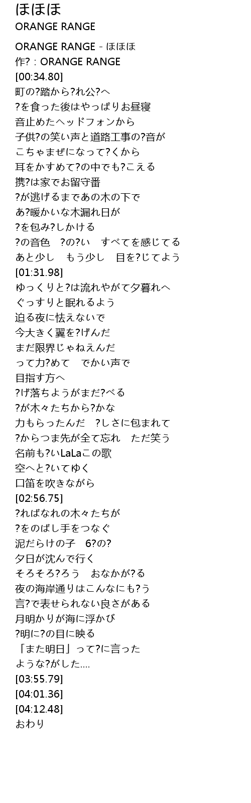 | [00:00.00] | ORANGE RANGE - ほほほ |