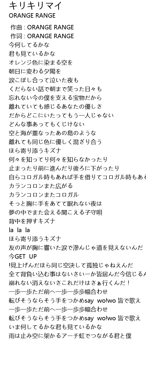 | [00:00.274] | 作词 : ORANGE RANGE |