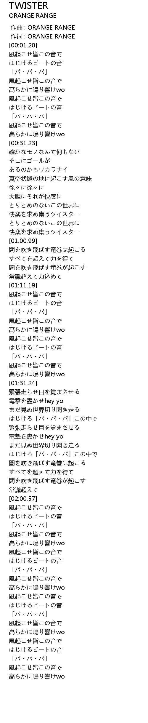 | [00:00.340] | 作词 : ORANGE RANGE |