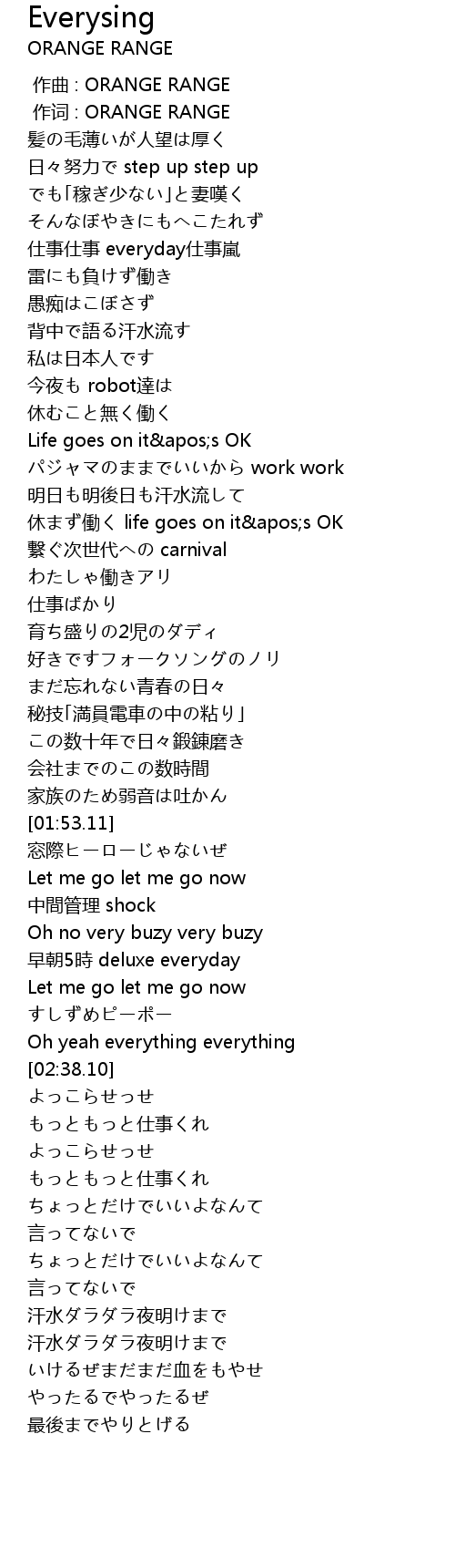 | [00:01.00] | 作词 : ORANGE RANGE |