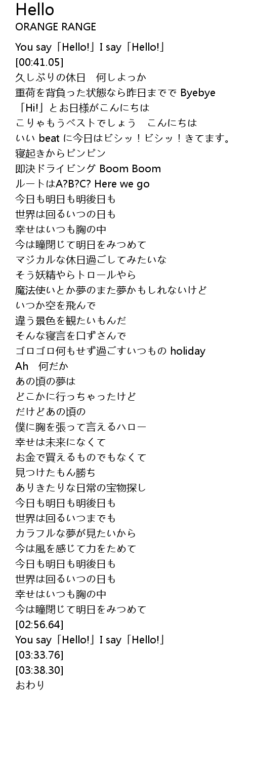 | [02:59.29] | You say「Hello!」I say「Hello!」 |