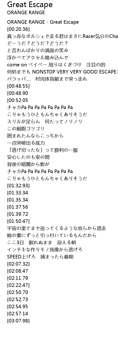 | [00:00.00] | ORANGE RANGE - Great Escape |