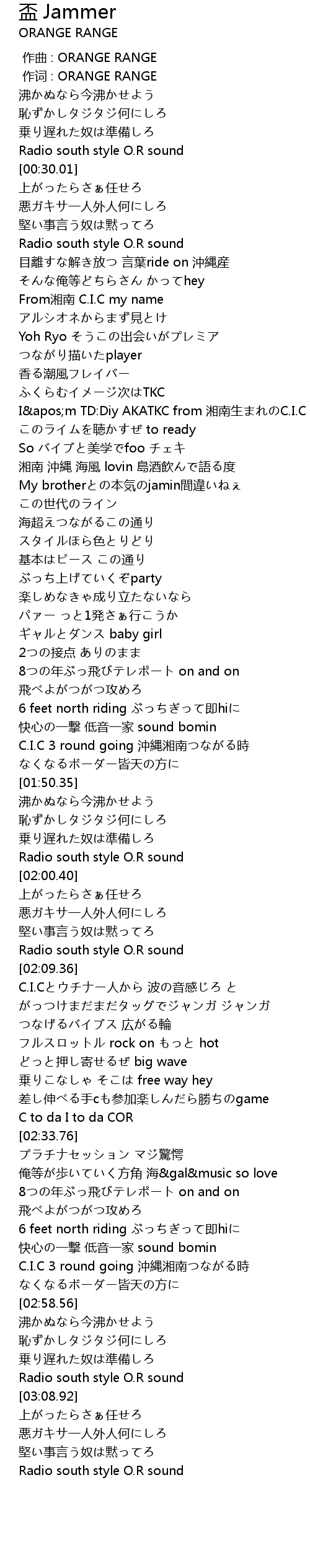 | [00:01.00] | 作词 : ORANGE RANGE |