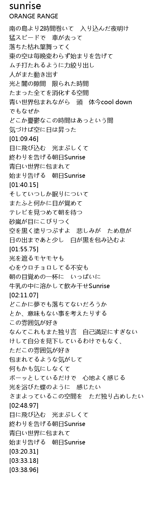 | [03:16.59] | 始まり告げる 朝日Sunrise |