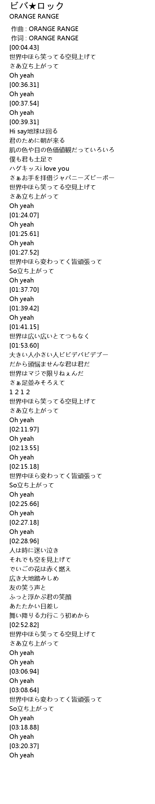 | [00:01.00] | 作词 : ORANGE RANGE |