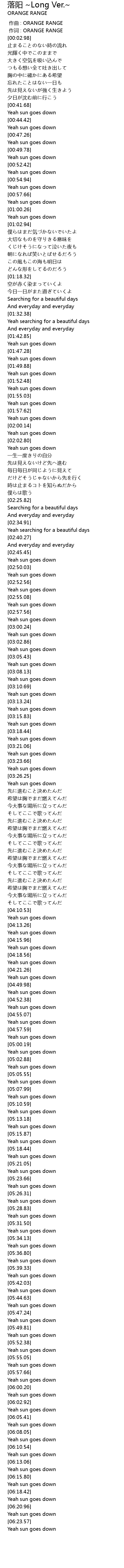 | [00:00.699] | 作词 : ORANGE RANGE |