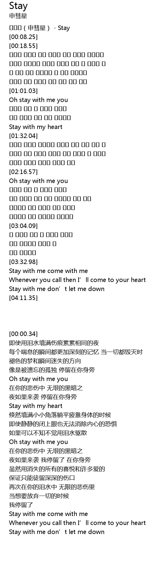 | [00:00.34] | 신혜성(申彗星) - Stay |