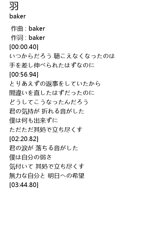 | [00:34.29] | いつからだろう 聴こえなくなったのは |