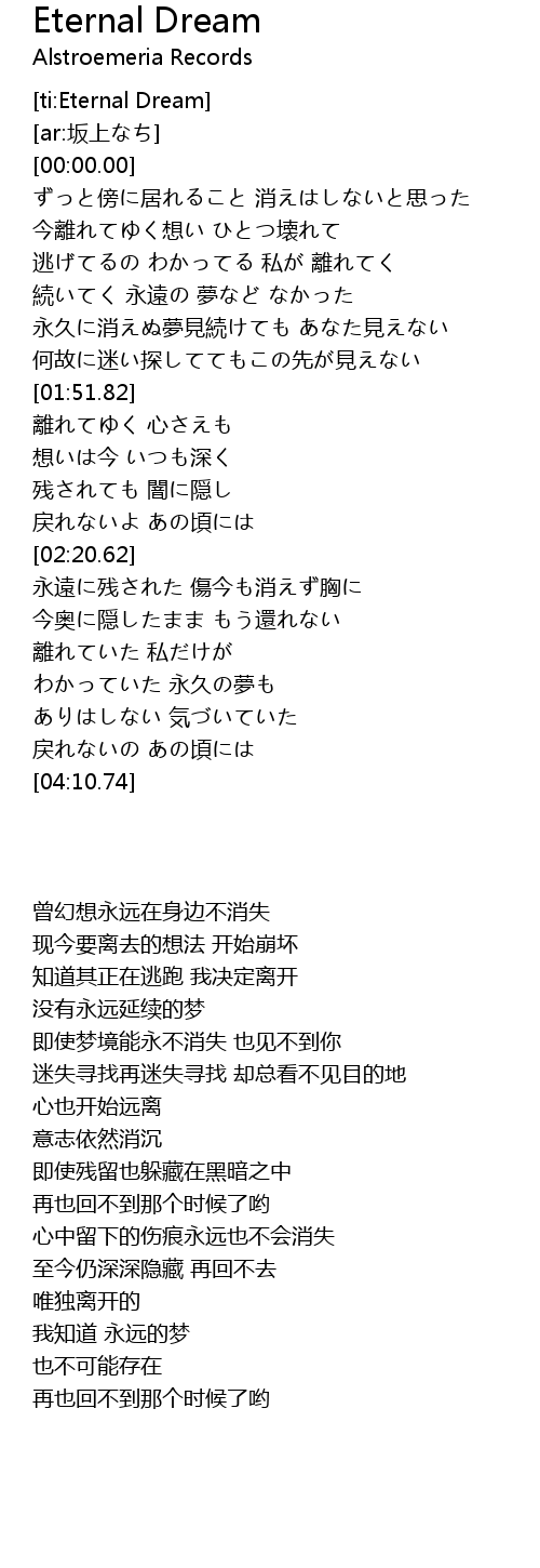 | [01:09.78] | 続いてく 永遠の 夢など なかった |