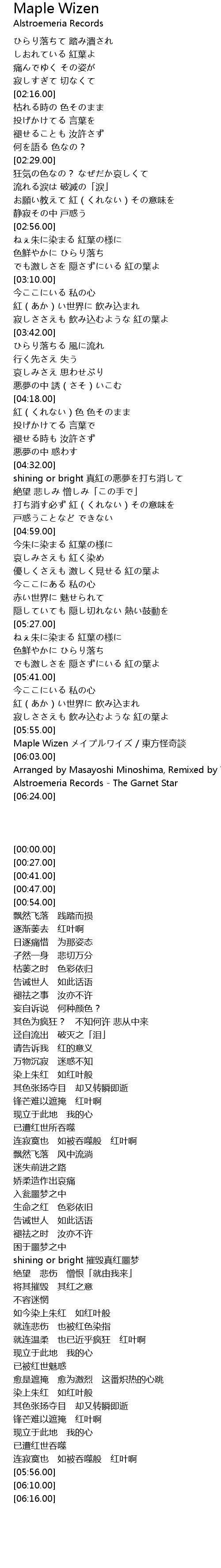 | [06:16.00] | Alstroemeria Records - The Garnet Star |