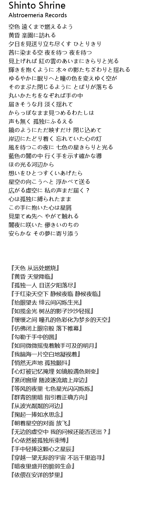 | [02:06.70] | 『抬眼望去 绯云间闪烁生光』 |