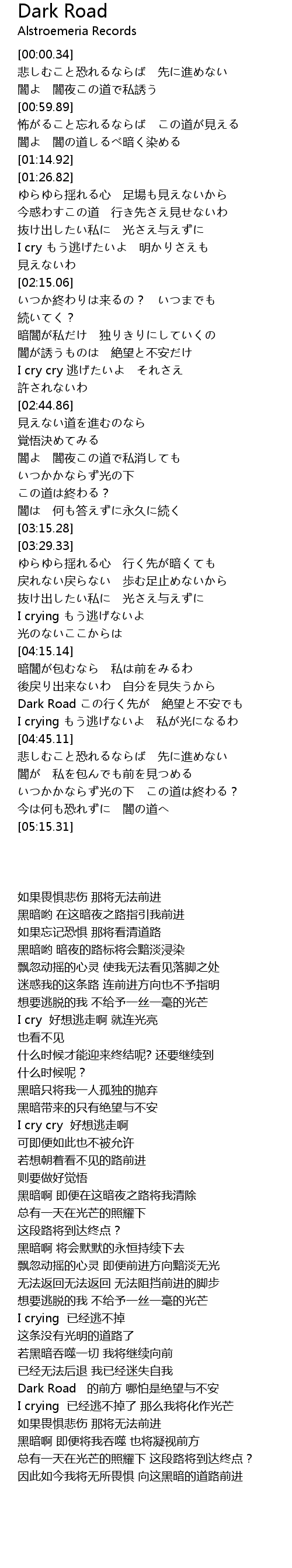 | [04:30.08] | Dark Road 的前方 哪怕是绝望与不安 |
