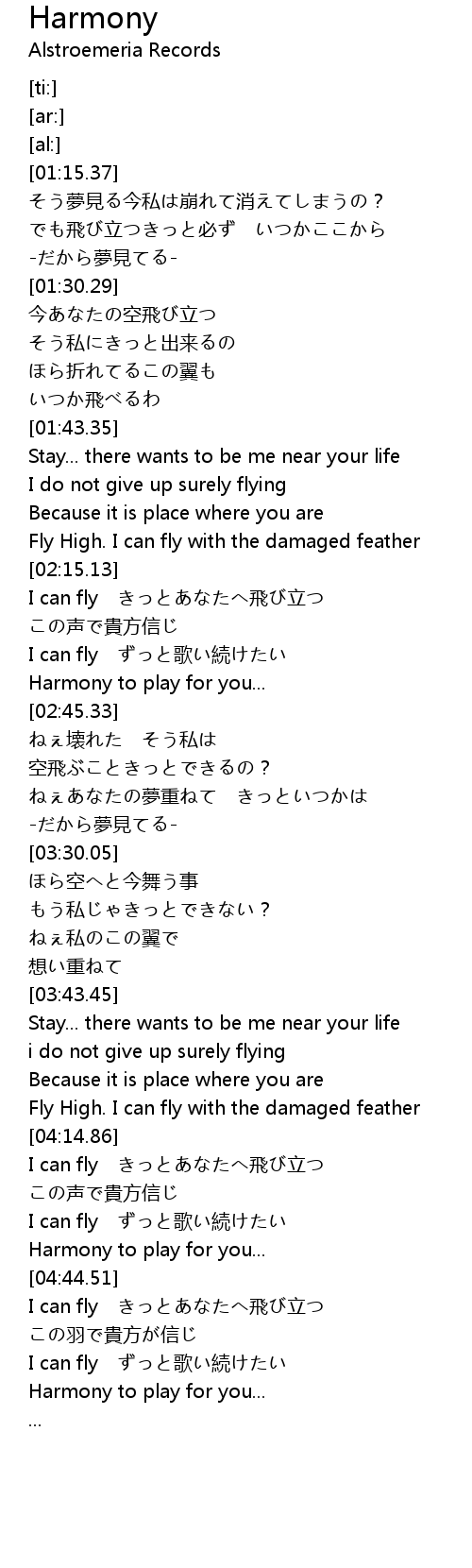 | [04:30.20] | I can fly ずっと歌い続けたい |