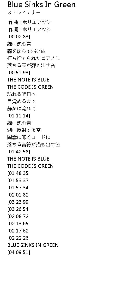 | [03:43.93][03:23.99][02:02.64] | THE NOTE IS BLUE |