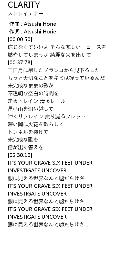 | [03:12.15] | IT'S YOUR GRAVE SIX FEET UNDER |